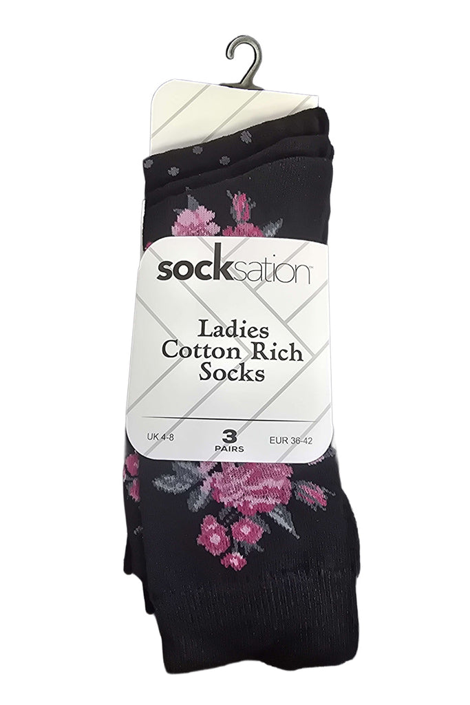 3 Pairs of Ladies Dotted and Floral Patterned Socks