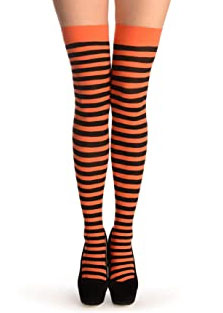 You can add some flair and color to your legs with our assortment of striped stockings. Consider using red/white or purple/black stripes for a visually arresting effect. Additionally, we have holiday hold-up stockings in orange, black, red, and green. The look can be finished with classic black and white stripes or classy black stockings paired with a lace top. Check out our collection, which includes children's creepy striped items and white nurse stockings. Try our bloody, white stockings for a dramatic touch. Use our wide selection of stockings to elevate your legwear game and leave a lasting impression.